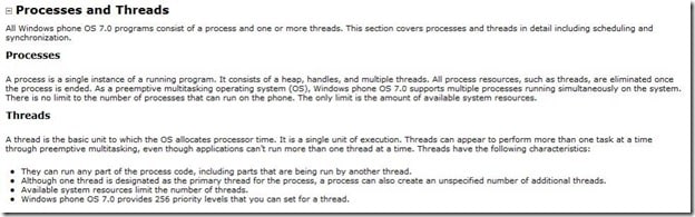 “As a preemptive multitasking operating system (OS), Windows phone OS 7.0 supports multiple processes running simultaneously on the system. There is no limit to the number of processes that can run on the phone. The only limit is the amount of available system resources.”