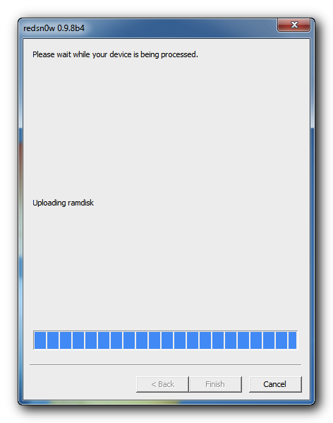 RedSn0w will then begin uploading the new RAM Disk and Kernel.