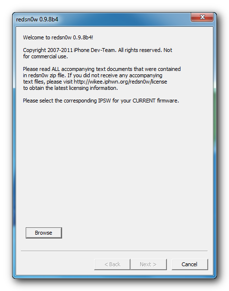 Once iTunes has finished updating your iPad to the desired firmware open the Pwnage folder on your desktop and launch the redsn0w application from the redsn0w folder we extracted earlier.