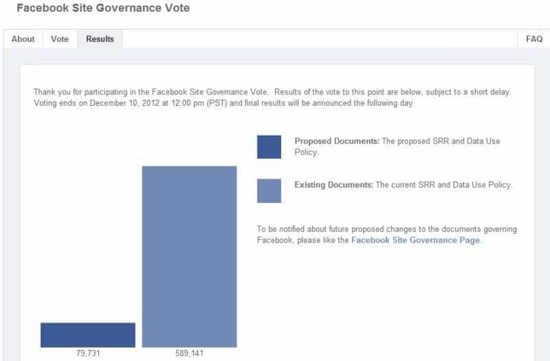Around three weeks ago, Facebook sent emails to its users proposing to take away the voting privileges from them for the site’s governance issues. Deadline of voting for and against Facebook was until December 10, 2012 by 12:00 pm (PST). The voting result has been published. Based on voting result, Facebook is taking away users’ right to vote on privacy policy.