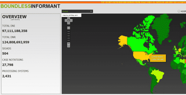The ‘Boundless Informant’ essentially allows NSA personnel to identify different regions on a heat map of the globe and then discern the different kinds of intelligence pieces available for that region. Queries such as “Are there any visible trends for the collection?” can be used by these personnel to find out definite trends about the data from a given region.