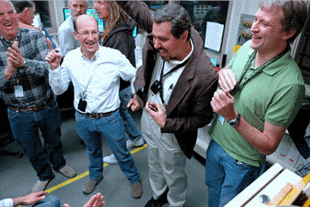 Chuck Mielke Celebrates With Colleagues Confirming A World Record Magnetic Pulse