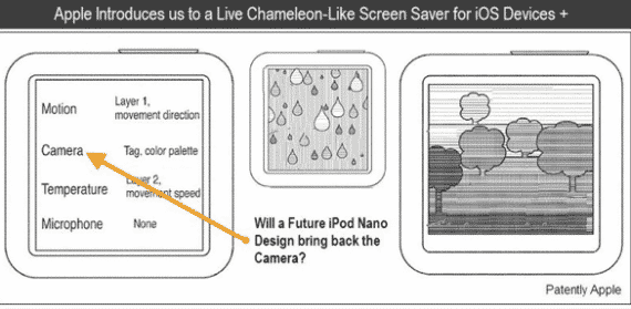 In addition to a camera, the application also makes mention of the inclusion of a motion sensor, temperature gauge and a microphone. Each of these sensors could be used to dynamically alter the way a screensaver would be played on an iPod nano.While the application itself makes no mention of the iPod nano model in its text, the images show a small device with no physical buttons with an appearance similar to the multi-touch model Apple released last September.The mention of a camera in the patent filing comes just days after a new photo claimed to show a seventh-generation iPod nano with a rear-facing camera, and without the built-in clip featured on the sixth-generation model. Another picture, also suggesting Apple could add a camera to its tiny media player surfaced in early April.A camera was previously featured on the iPod nano in its larger fifth-generation model, released in 2009 and featuring the classic-style click wheel for input. Previous version of the device also supported iPod Click Wheel Games, but no games are available for the touchscreen sixth-generation iPod nano.More Info