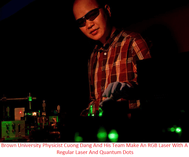 With the combination of 3 single colored lasers Red, Green and Blue (RGB), it’s possible to replicate the whole visible light spectrum. Using the created single material which is capable of producing several wavelengths of laser light, Brown University Physicist Cuong Dang and his team have successfully completed the experiment. Cuong Dang made a full RGB laser. To make this RGB laser, he used Colloidal Quantum Dots (CQDs) and thin films that can produce light via quantum excitations. The size of the quantum dot determines what color of the light it will emits. It is possible by overlaying many small patches of CQDs on surface.
